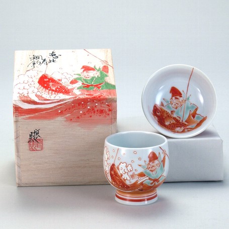 【九谷焼】 和我盃 恵比寿鯛釣り 伝統工芸士 福田良則 作